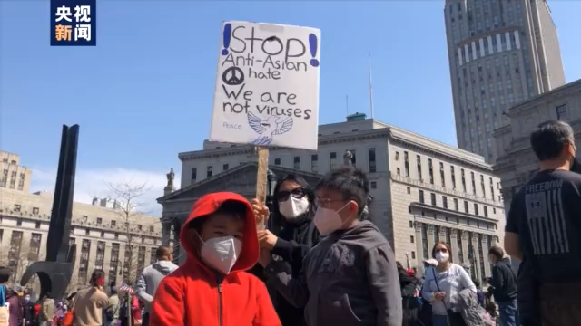 有不少抗议者高举“停止仇恨亚裔”“停止歧视”“仇恨才是病毒”等标语,表达诉求。有抗议者还带着子女老人一同前往,表达对活动的支持。