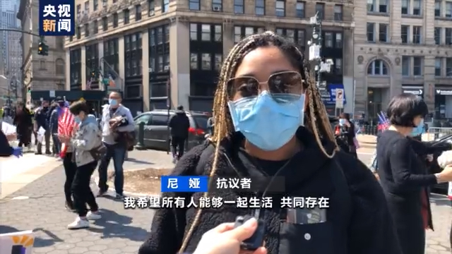 抗议者 尼娅:仇恨一人就是仇恨全部,我希望所有人能够一起生活,共同存在,人与人之间不应该有这样的仇恨,我觉得非洲裔团体和亚裔团体有不同,但是我们需要搁置异议,团结起来为我们人生奋战。