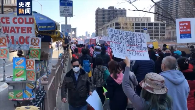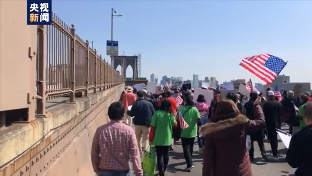 央视记者 徐德智:游行的队伍是已经走上了布鲁克林大桥,实际上抗议者希望通过他们今天这个活动,能让更多人听到他们的声音,让他们能更加重视亚裔团体在美国的安全。