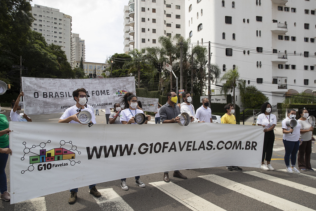 巴西圣保罗贫民窟民众敲锅盆街头抗议 要求政府提供粮食援助