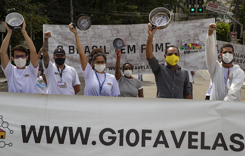 巴西圣保罗贫民窟民众敲锅盆街头抗议 要求政府提供粮食援助