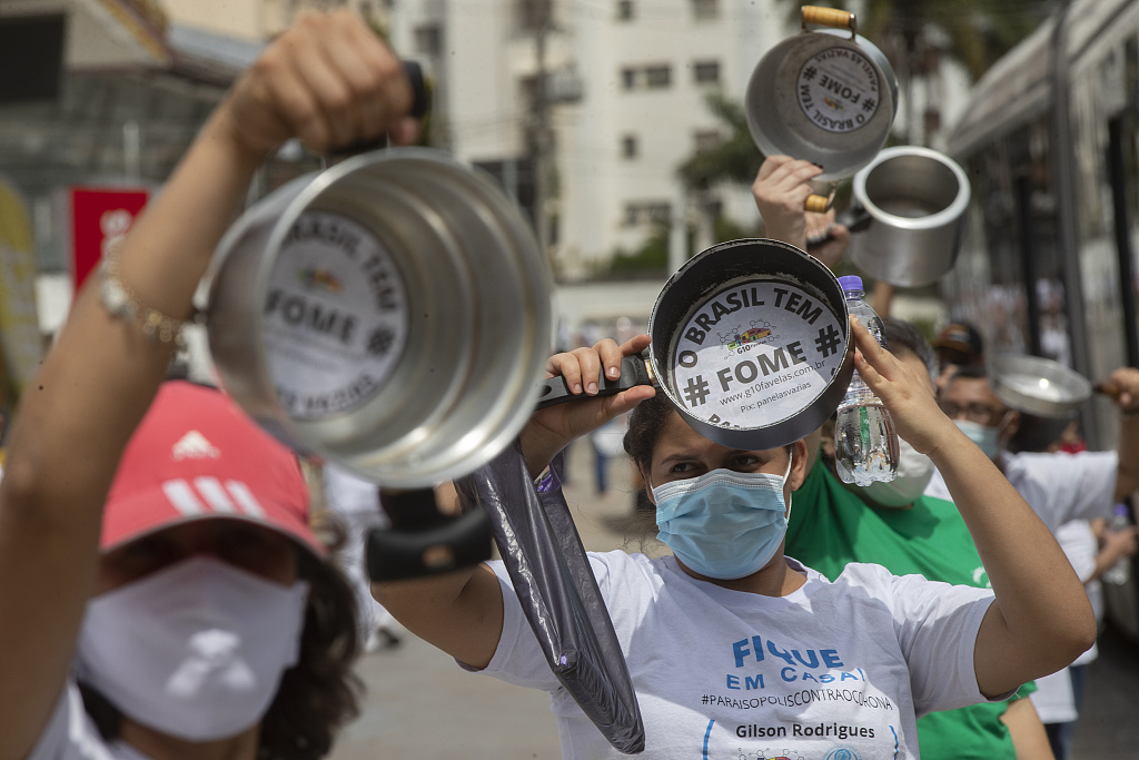 巴西圣保罗贫民窟民众敲锅盆街头抗议 要求政府提供粮食援助