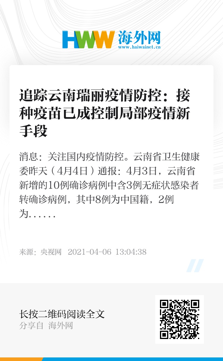 央视网消息:关注国内疫情防控。云南省卫生健康委昨天(4月4日)通报:4月3日,云南省新增的10例确诊病例中含3例无症状感染者转确诊病例,其中8例为中国籍,2例为缅甸籍。新增无症状感染者1例,为中国籍。