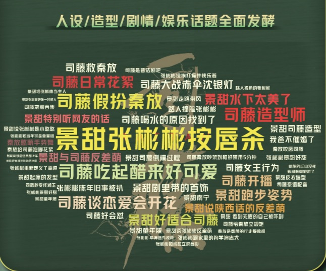 此后,围绕着三大爆点的素材在首周开始输出,并及时根据舆情反馈和动态数据实时调整内容占比。比如,当用户对“造型美”等人设向话题的认知更强时,淘秀团队不急于输出CP向内容,而是稳稳抓住用户最强关注点。因此首周的“景甜司藤造型”“司藤人间旗袍富贵花”等都成为爆款话题,构建了粉丝圈层的基础。