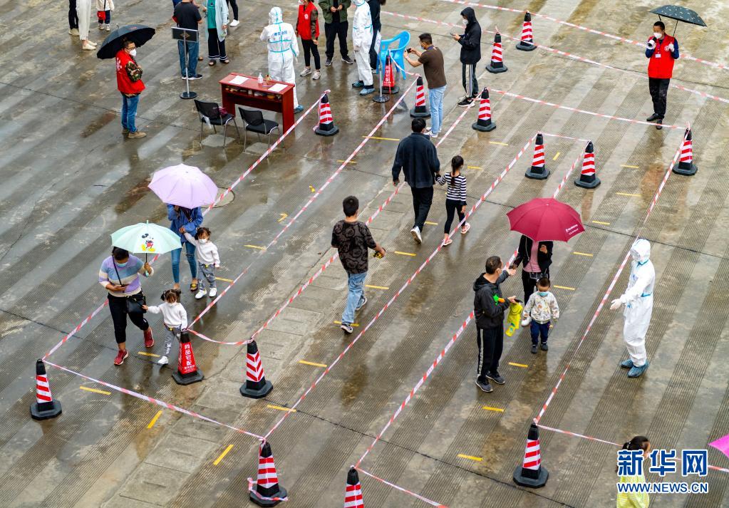 4月6日,在瑞丽市友谊社区一核酸检测点,医务人员进行核酸采样工作。当日,云南省瑞丽市市区全面开展第二轮全员新冠肺炎疫情核酸检测。新华社记者 陈欣波 摄