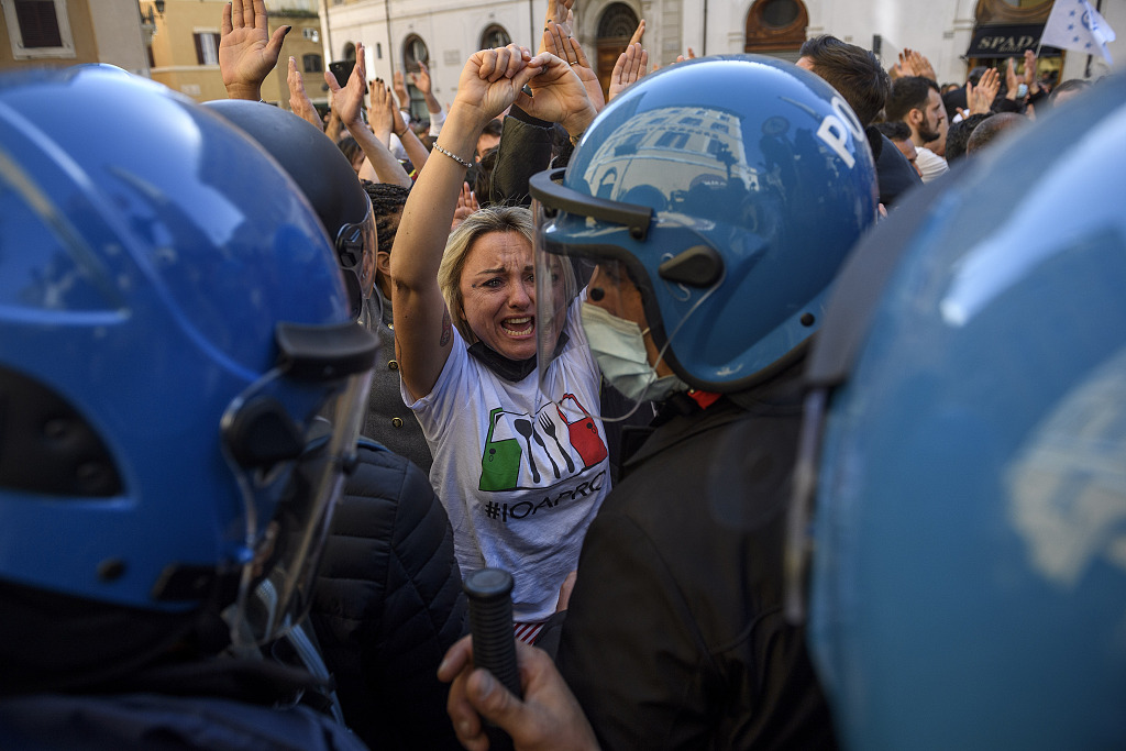 意大利多地餐饮和商业经营者举行抗议 要求重新开业