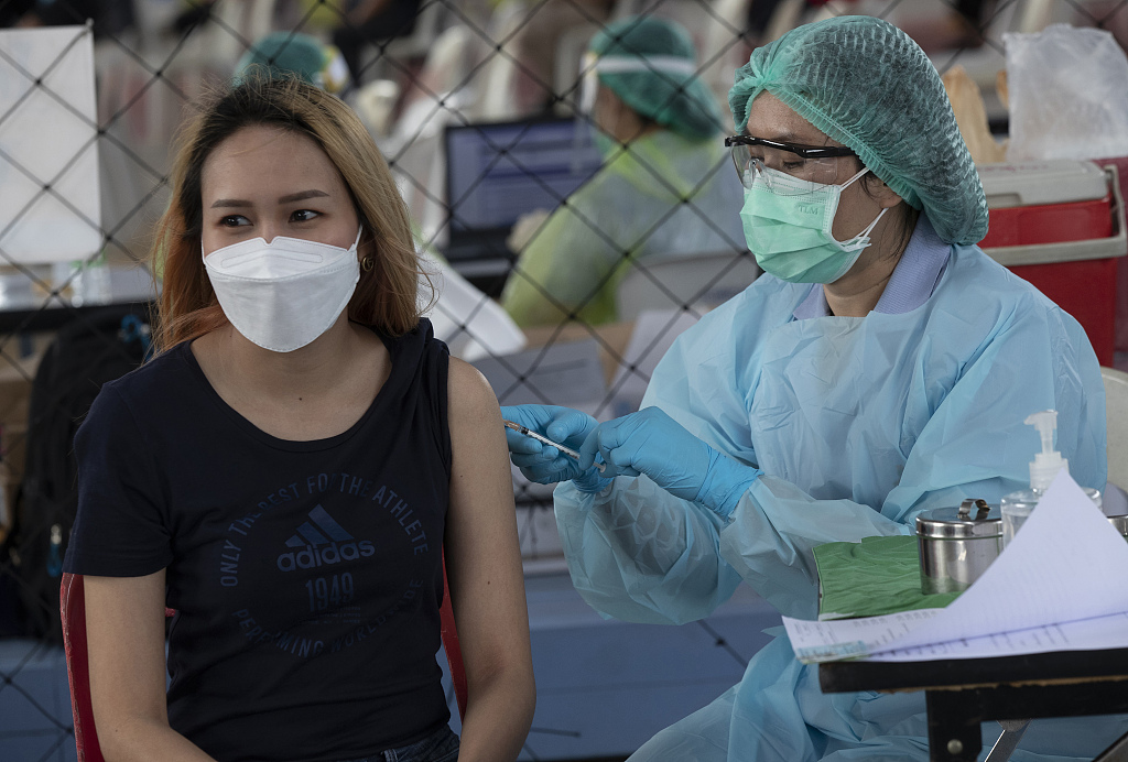 泰国曼谷娱乐场所务工人员接种中国产新冠疫苗