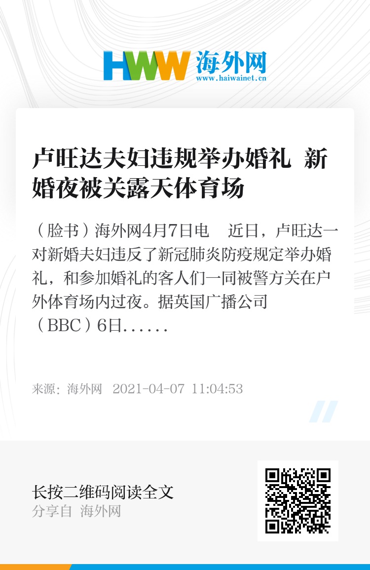 海外网4月7日电 近日,卢旺达一对新婚夫妇违反了新冠肺炎防疫规定举办婚礼,和参加婚礼的客人们一同被警方关在户外体育场内过夜。