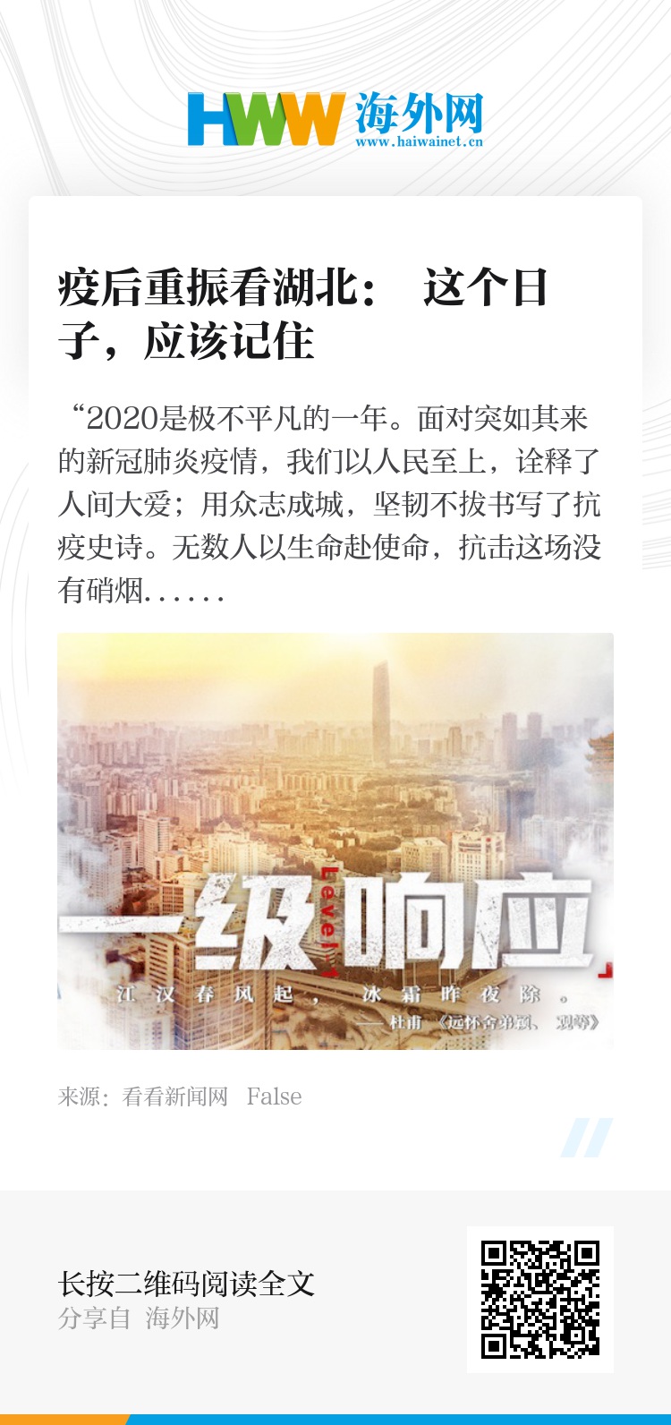 一年前的4月8日,湖北武汉“解封”。2020年的那段抗疫经历,注定让人难以忘记。跨越冬与春、经历生与死、战胜惊与险,英雄的武汉在全国支援下挺了过来,为全国战胜疫情付出了巨大牺牲,为支持全球抗疫做出了重要贡献。