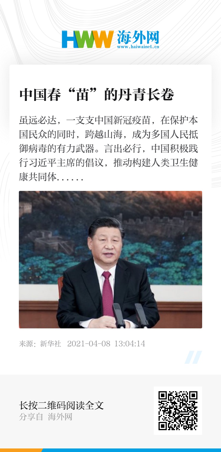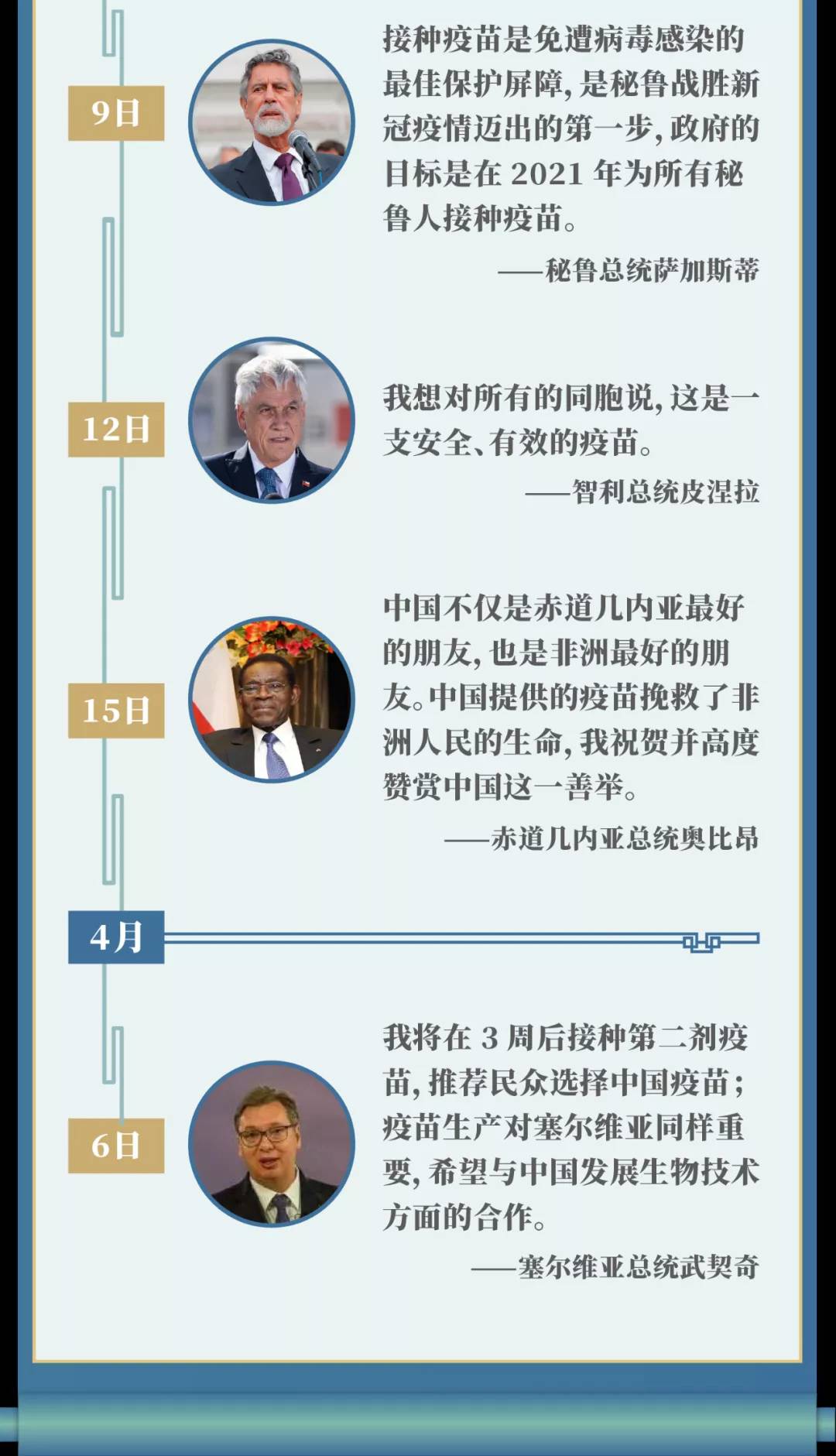 言出必行,中国积极践行习近平主席的倡议,推动构建人类卫生健康共同体,努力让疫苗成为普惠可及的全球公共产品。