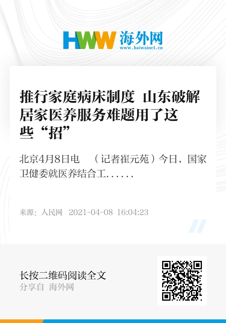 人民网北京4月8日电 (记者崔元苑)今日,国家卫健委就医养结合工作进展成效有关情况举行发布会,这是国家卫健委以“奋斗百年路 启航新征程”为主线召开的“中国共产党为人民谋健康的100年”系列新闻发布之一。会上,山东省卫生健康委副主任吴向东分享了山东在破解居家医养服务难题上的做法和经验。
