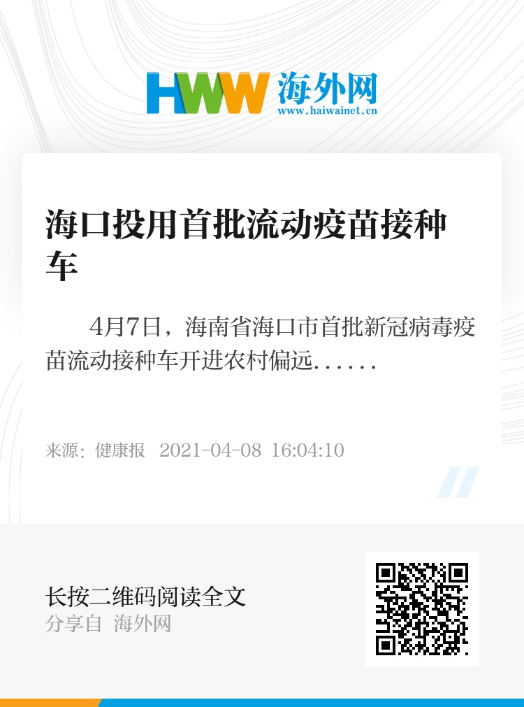 4月7日,海南省海口市首批新冠病毒疫苗流动接种车开进农村偏远地区、企业等,为群众上门提供接种服务。