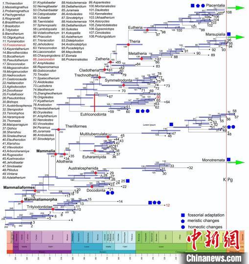 毛方园表示,最新完成的合作研究基于简约法和似然法方法进行的系统发育分析,从以哺乳型动物为主体,扩大到哺乳形动物,成为目前哺乳形动物系统发育最为全面的一个分析。通过贝叶斯方法计算,该研究还获得哺乳形动物主要类群的分异时间,既为了解哺乳形动物的演化提供时间框架,也为解释挖掘穴居以及脊椎变化在哺乳形动物不同支系中趋同演化提供系统发育框架。(完)