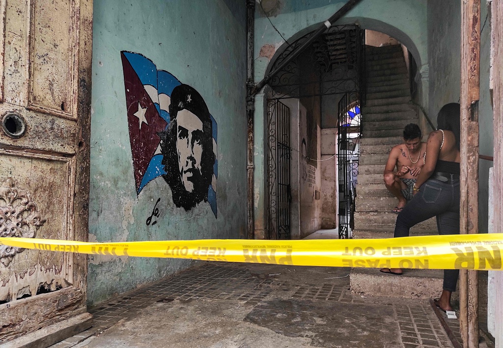 图为当地时间4月7日,古巴首都哈瓦那新冠疫情恶化,一处街道被封锁。图片来源:人民视觉