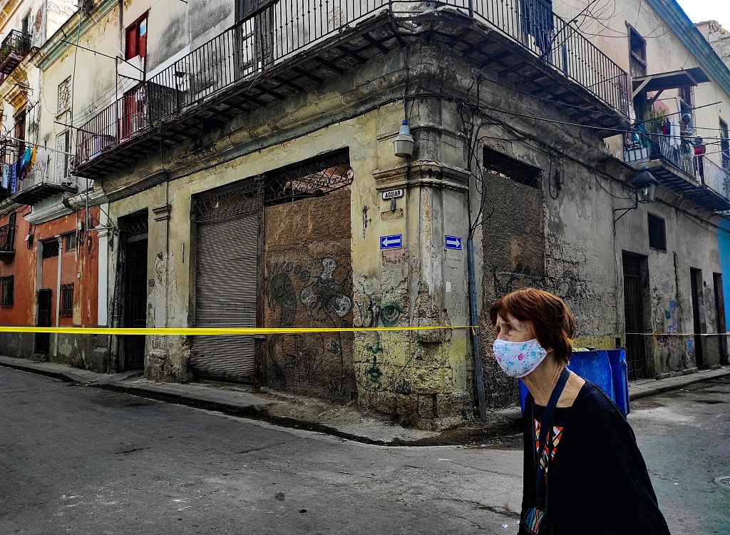 图为当地时间4月7日,古巴首都哈瓦那新冠疫情恶化,一处街道被封锁。图片来源:人民视觉