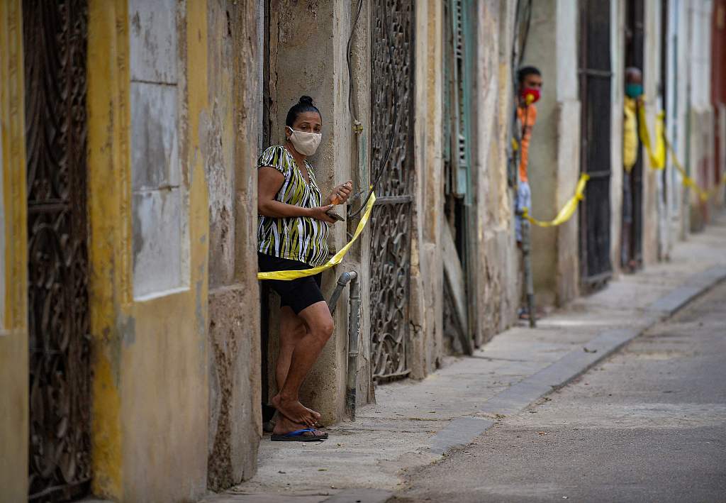 古巴公共卫生部4月6日公布的数据显示,过去一天该国新增新冠确诊病例1030例,这是该国连续第8天日增确诊病例超过一千例。古巴国家主席迪亚斯-卡内尔6日宣布,将对疫情最严重的哈瓦那采取更严厉的防控措施。图为当地时间4月7日,古巴首都哈瓦那新冠疫情恶化,一处街道被封锁。图片来源:人民视觉