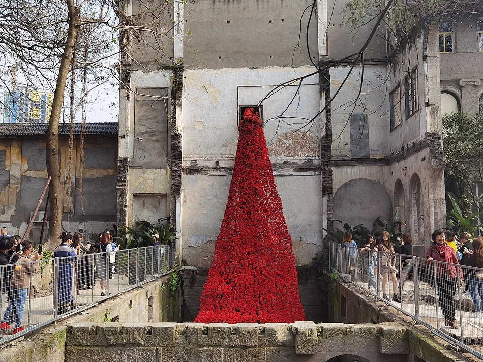 4月8日,重庆市渝中区山城巷的百年建筑仁爱堂旁诞生了一个“荒野花园”,这里曾经是一片等待被拆除的建筑。据了解,该花园原本是废弃多年的垃圾场,在清理掉上千吨垃圾后,在废墟上打造出4000多平方米的花园,共使用了紫罗兰、郁金香、薰衣草和多肉植物在内的上万盆花卉,内容包括花瀑、微型花园景观等,构筑了一幅浪漫的画卷,吸引了众多市民游客前往打卡拍照。图片来源:视觉中国