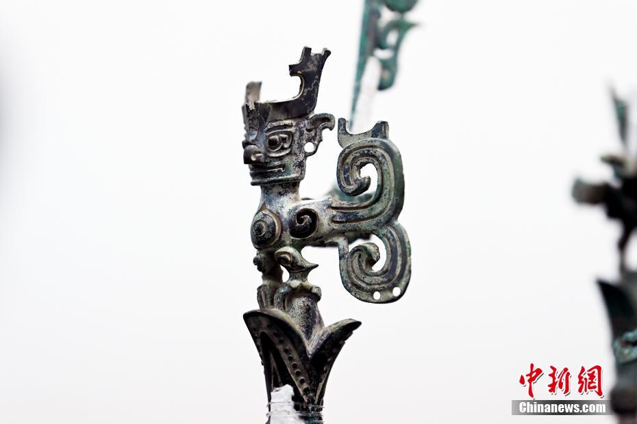 图为3号青铜神树的顶部头像。中新社记者 安源 摄