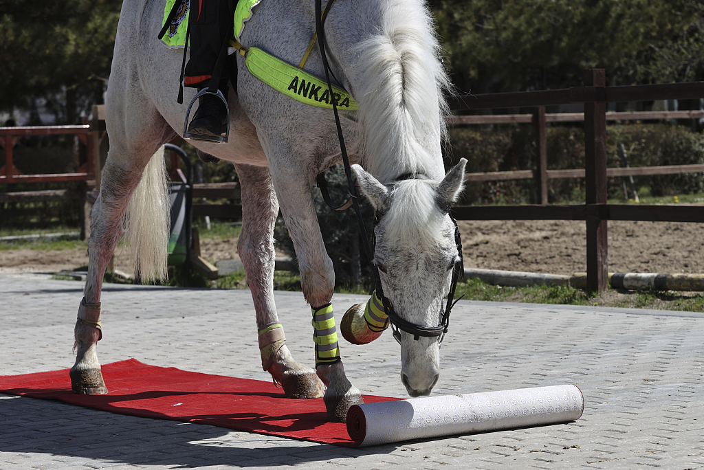 当地时间2021年4月9日,土耳其安卡拉,警马在接受训练。图源:视觉中国