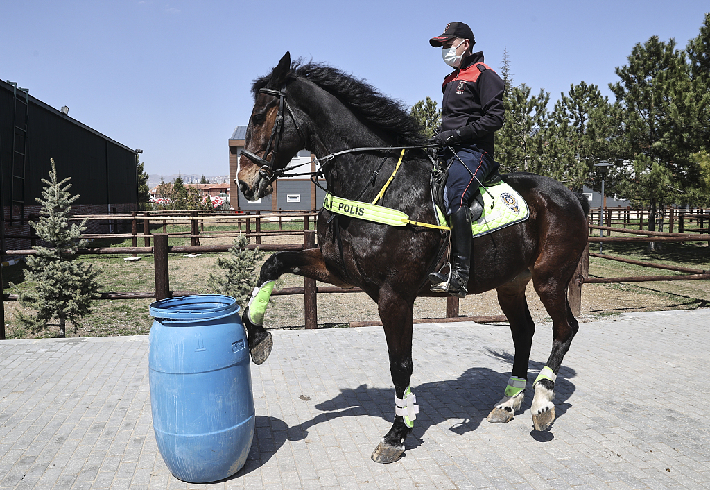 当地时间2021年4月9日,土耳其安卡拉,警马在接受训练。图源:视觉中国