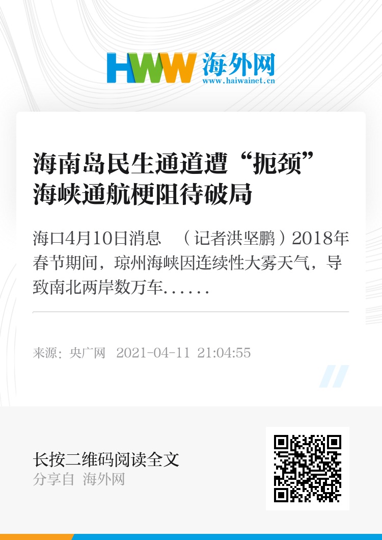 央广网海口4月10日消息 (记者洪坚鹏)2018年春节期间,琼州海峡因连续性大雾天气,导致南北两岸数万车辆及人员滞留在城区或道路上,此情此景仍历历在目。时隔三年,位于琼州海峡南岸的海南海口,在今年春运启动前夕、清明节假期两度因天气原因、过海车辆激增导致城区发生车辆拥堵、人员滞留。