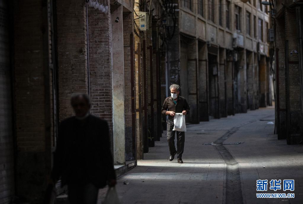4月10日,在伊朗首都德黑兰大巴扎,行人走过关闭的商店。 新华社发(艾哈迈德·哈拉比萨斯摄)
