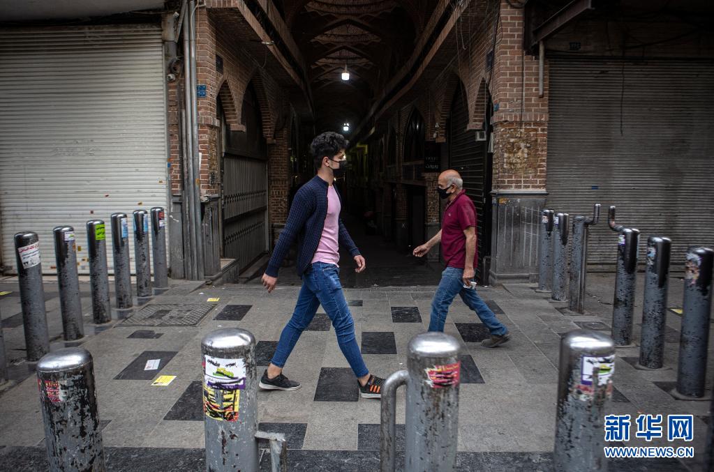 4月10日,在伊朗首都德黑兰大巴扎,行人走过关闭的商店。 新华社发(艾哈迈德·哈拉比萨斯摄)