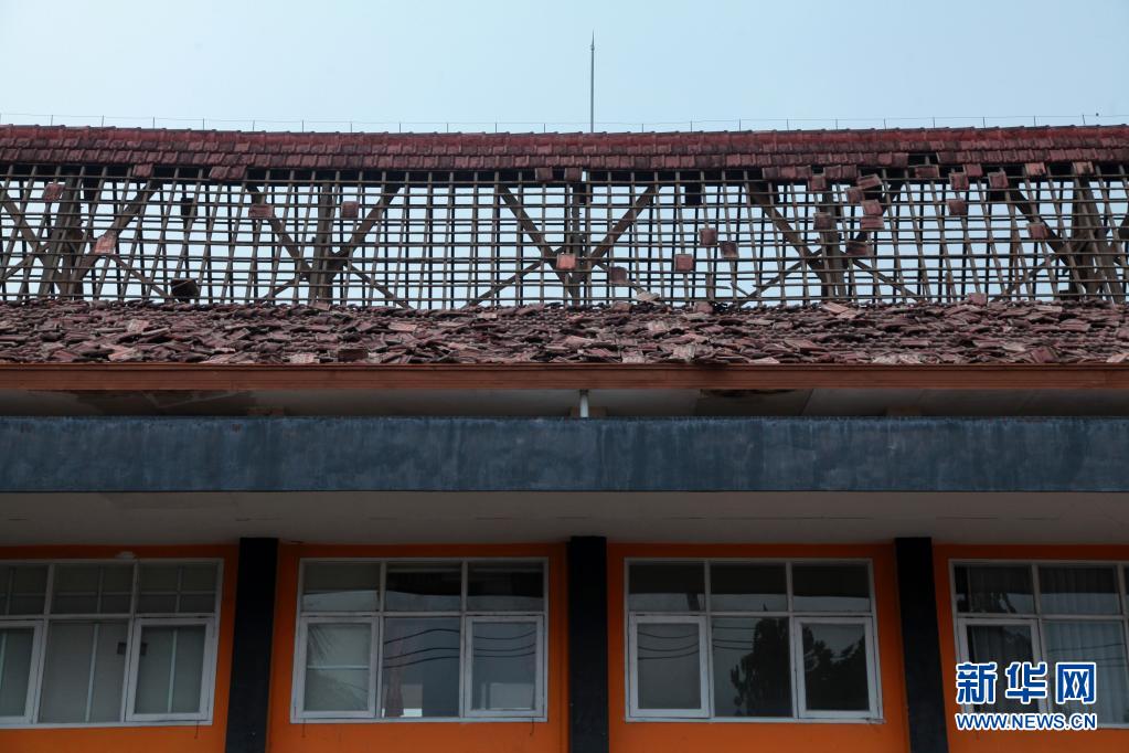 印度尼西亚东爪哇省南部海域10日下午发生6.7级地震,目前尚无人员伤亡和财产损失报告。这是4月10日在印度尼西亚东爪哇省玛琅拍摄的在地震中受损的学校建筑。新华社发(巴尤摄)