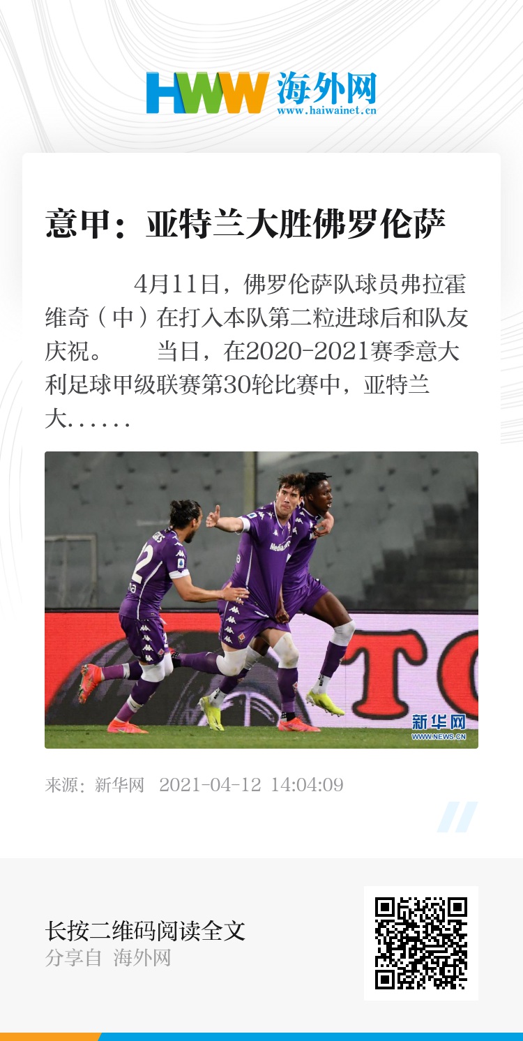 当日,在2020-2021赛季意大利足球甲级联赛第30轮比赛中,亚特兰大队客场以3比2战胜佛罗伦萨队。