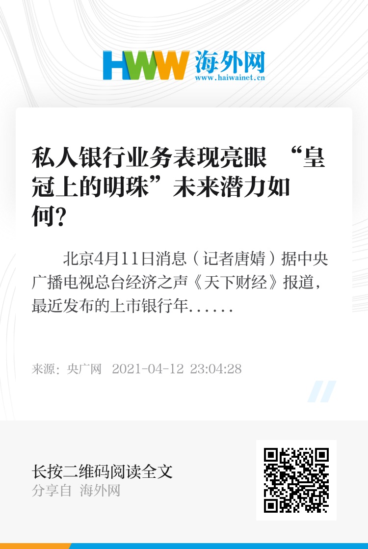央广网北京4月11日消息(记者唐婧)据中央广播电视总台经济之声《天下财经》报道,最近发布的上市银行年报显示,2020年私人银行业务表现不俗,多家银行都呈现两位数增长。为何私人银行业务表现亮眼?未来发展空间如何?