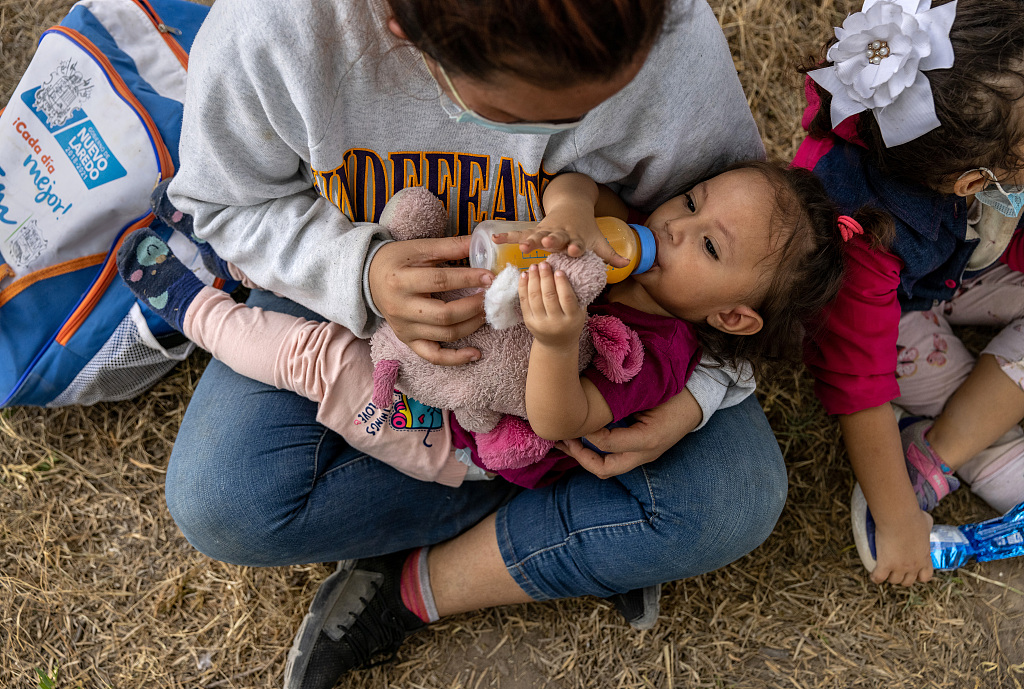 美国得克萨斯州,非法移民穿越大格兰德河进入美国境内,其中包括大量儿童。图片来源:人民视觉