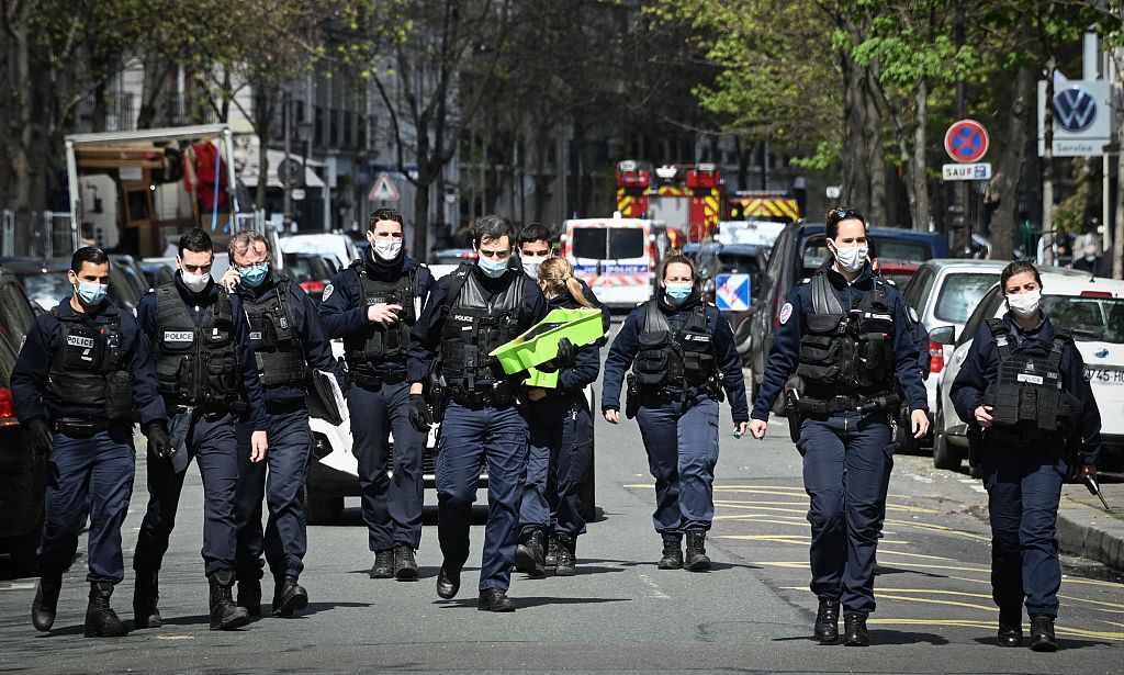 当地时间2021年4月12日,法国巴黎,位于巴黎16区的亨利·迪南医院门前当天下午发生一起枪击事件,一名男子头部中枪身亡,一名医院安保人员受伤。枪手驾驶摩托车逃离现场。枪手作案动机尚不清楚,警方正对其展开追捕。图片来源:人民视觉