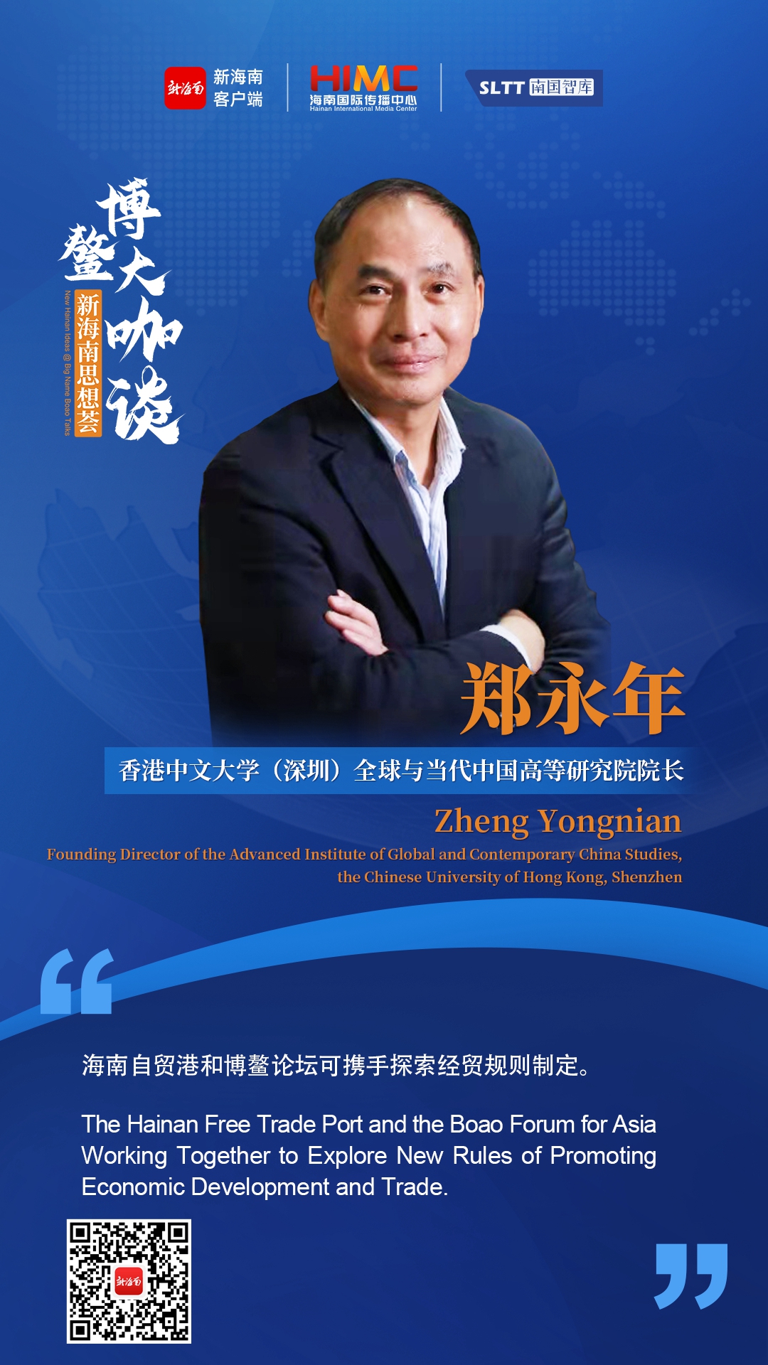 应南国智库邀约,近日,中国问题专家、香港中文大学(深圳)校长讲座教授、人文社科学院代行院长、全球与当代中国高等研究院院长郑永年教授在深圳接受了新海南客户端、南海网、南国都市报副总编辑胡续发的专访,深度解读了他对博鳌亚洲论坛和海南自贸港建设的思考和建议。