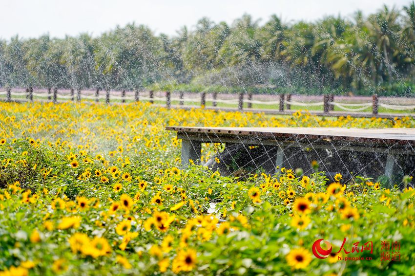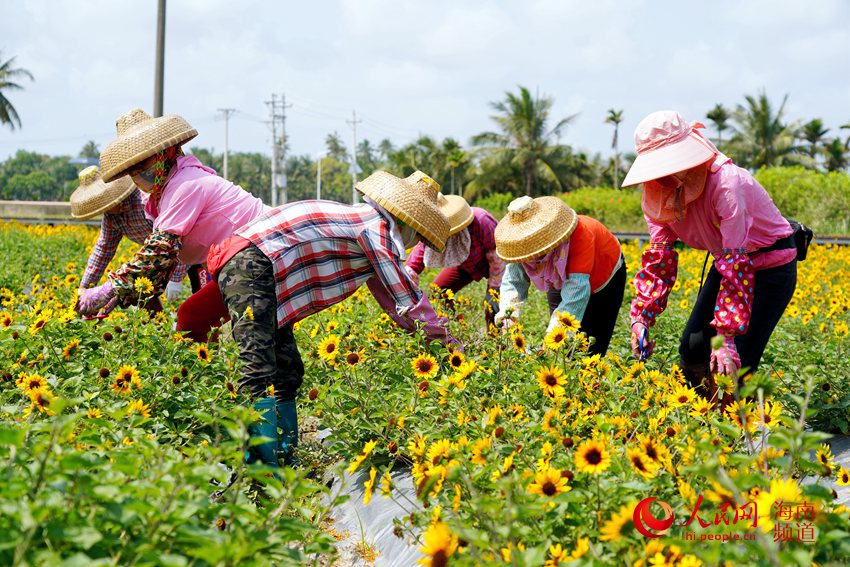 博鳌亚洲论坛2021年年会临近,南强·大路坡美丽乡村村民在花海忙得热火朝天 (蔡谜 摄)