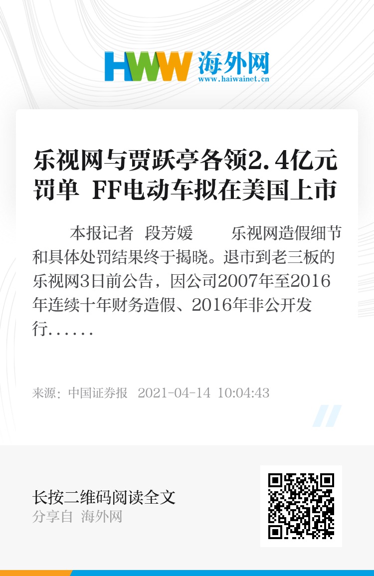 乐视网造假细节和具体处罚结果终于揭晓。退市到老三板的乐视网3日前公告,因公司2007年至2016年连续十年财务造假、2016年非公开发行构成欺诈发行等,北京证监局对公司合计罚款2.406亿元,对贾跃亭罚款2.412亿元。
