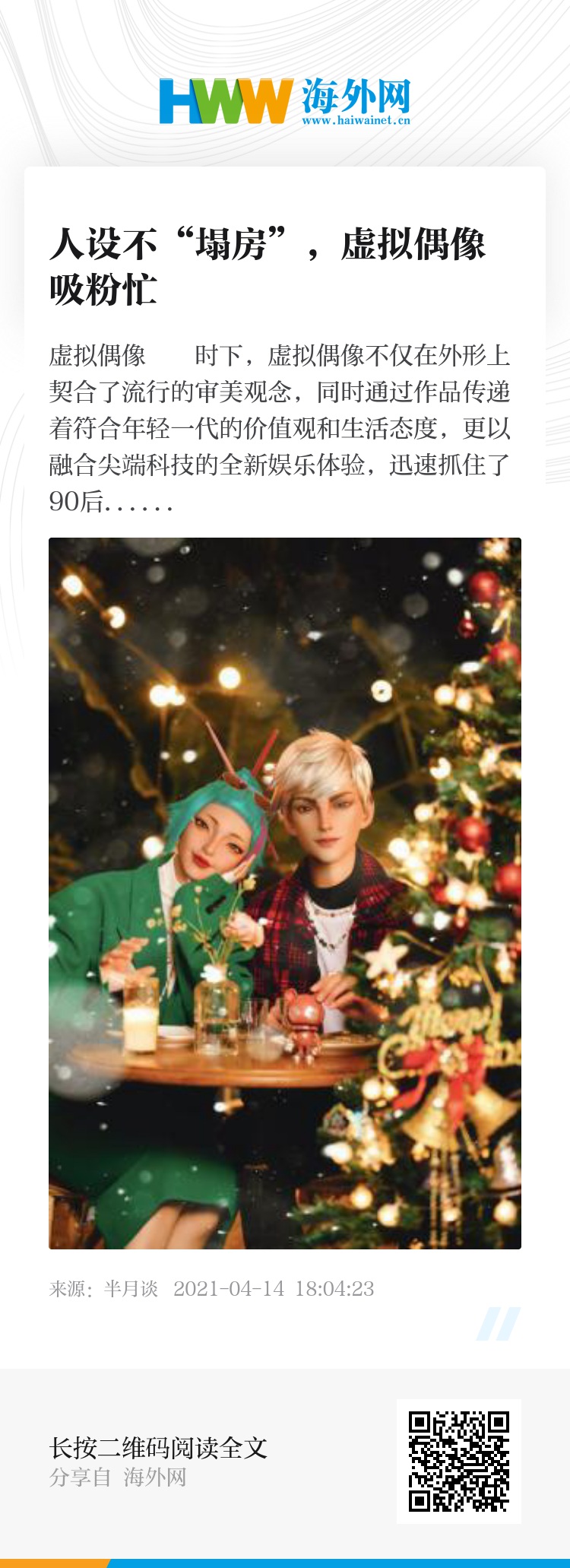半月谈记者了解到,各类公司在打造虚拟偶像时,都会格外注意两点——颜值和性格。