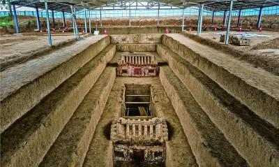 三座墓葬,规模巨大、形制特殊、结构完整,且皆为两室以上的大墓,出土了土雕建筑模型、巨幅壁画,经判断,为十六国时期高等级墓葬。这一发现对研究十六国时期大型高等级墓葬的分布、结构等中国古代陵墓制度具有重大价值。