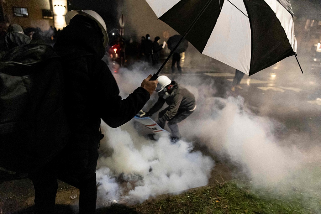 据俄罗斯卫星网报道,美国明尼苏达州一名非裔男子达恩特·赖特11日遭警方枪击身亡后,布鲁克林中心市虽然实施了宵禁,但执法机构工作人员和抗议者之间的冲突已持续两日。图片来源:人民视觉