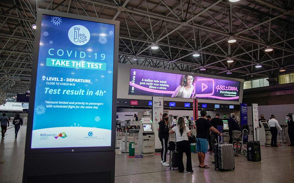 当地时间2021年4月13日,巴西里约热内卢,乘客在机场候机。13日,法国新冠肺炎累计确诊病例超过510万例,法国总理卡斯泰当天宣布,法国暂停所有往返巴西航班。图片来源:人民视觉