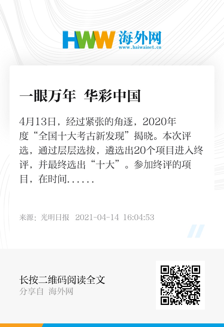 4月13日,经过紧张的角逐,2020年度“全国十大考古新发现”揭晓。