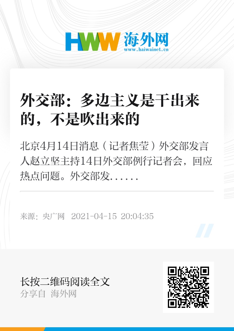 央广网北京4月14日消息(记者焦莹)外交部发言人赵立坚主持14日外交部例行记者会,回应热点问题。