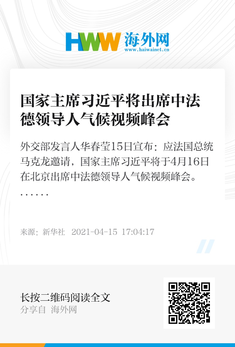 32058519,.国家主席习近平将出席中法德领导人气候视频峰会,.2021-04-15 17:48:17,.204301,.周璇
