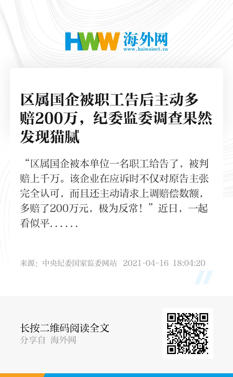“区属国企被本单位一名职工给告了,被判赔上千万。该企业在应诉时不仅对原告主张完全认可,而且还主动请求上调赔偿数额,多赔了200万元,极为反常!”近日,一起看似平常的民事诉讼案件,引起了江苏省南京市鼓楼区纪委监委工作人员的注意。