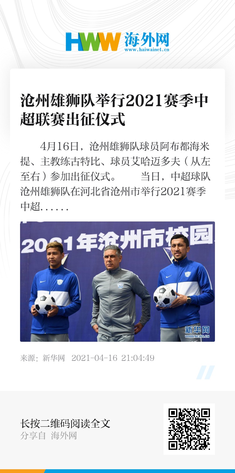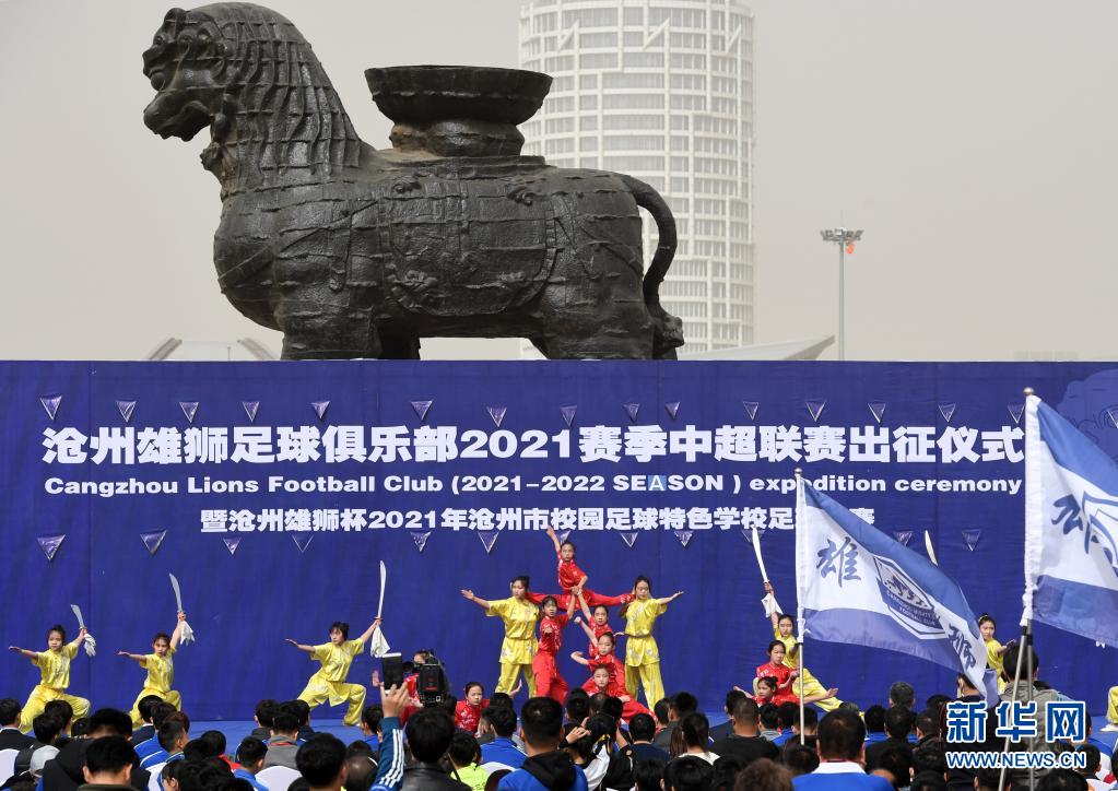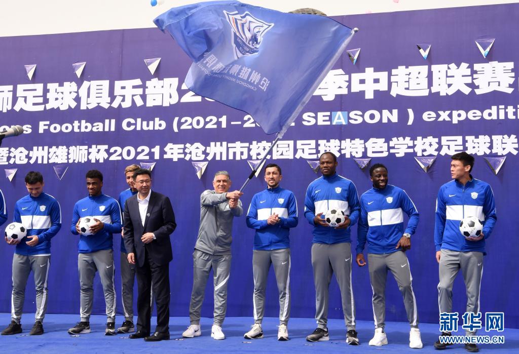 当日,中超球队沧州雄狮队在河北省沧州市举行2021赛季中超联赛出征仪式。