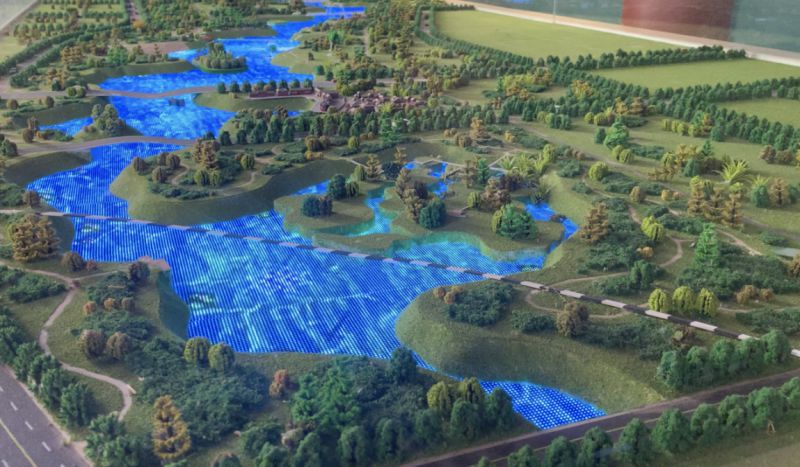 督察发现,中牟县三刘寨调蓄工程以引黄调蓄工程报批,但在建设过程中没有考虑调蓄灌溉功能,配套提灌工程至现场调查时仍未建成,下游干渠被垃圾堆满,灌区农田多年来只能使用地下水进行灌溉,进一步加剧地下水资源压力(郑州市属地下水超采城市)。而2017年7月完成蓄水的主湖面则被当地政府开发成为湿地公园,旅游活动开展得红红火火,游客络绎不绝。