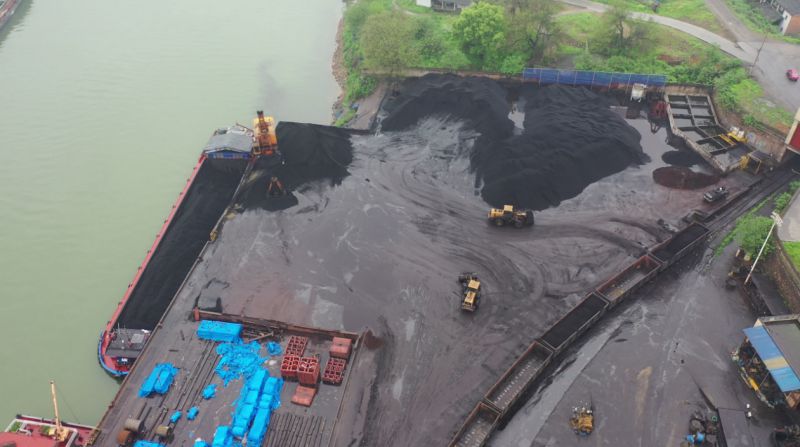 铁牛埠码头煤炭露天堆放,装卸作业粗放