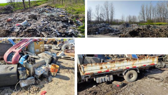 四是固体废物污染方面。督察发现,在拆解场地周边及附近的河流、池塘随处可见被倾倒的机动车拆解废物。尤为严重的是,这些拆解点产生的各类危险废物均没有任何台账记录,全部非法处置,环境风险隐患十分突出。