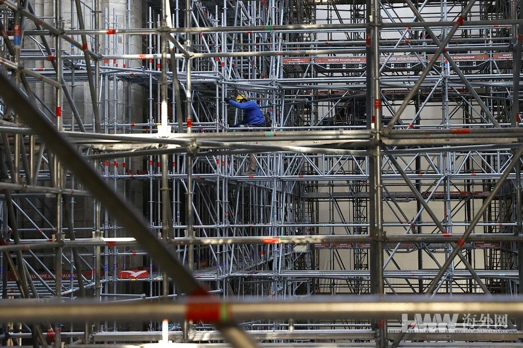 当地时间4月15日是巴黎圣母院大火两周年的纪念日,法国总统马克龙当地时间15日上午访问了巴黎圣母院的重建现场。当日,他在接受法国媒体采访时表示,两年来,建筑师们完成了大量的工作,安全而且专业。法国将信守承诺,在2024年,也就是大火五年之后完成重建。(供图:澎湃影像)