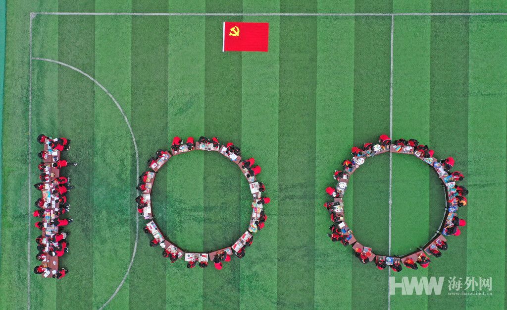 4月15日,浙江省台州市仙居县埠头镇中心小学在校运动场举行了“百年党史 手绘邮集”活动,100多位学生在老师指导下将党史故事、党史知识用国画、版画、儿童画等形式,手绘成一张张邮票,让学生在活动中领悟“知史爱党,知史爱国”。(供图:东方IC)