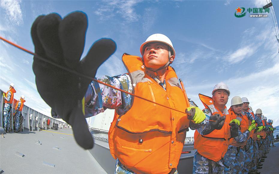 官兵架设承载索。孙晨旭 解放军报特约记者 李维 周演成 摄影报道